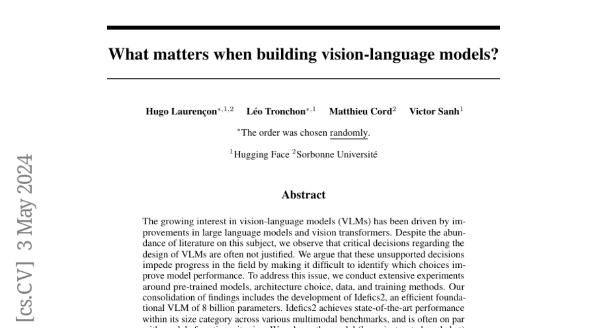 Moreover, we also release a paper, containing a lot of findings on how to build an efficient and performant Vision-Language Model: What matters when building vision-language models? (2405.02246)