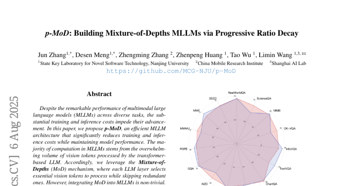 p-MoD p-MoD models MCG-NJU/p-MoD-LLaVA-NeXT-7B Image-Text-to-Text • 7B • Updated Dec 10, 2024 • 12 • 4 MCG-NJU/p-MoD-LLaVA-v1.5-7B Image-Text-to-Text • 7B • Updated Dec 10, 2024 • 15 • 3 p-MoD: Building Mixture-of-Depths MLLMs via Progressive Ratio Decay Paper • 2412.04449 • Published Dec 5, 2024 • 7