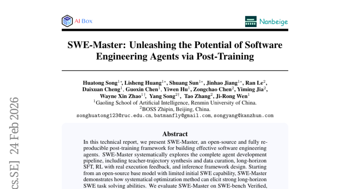 SWE-Master: Unleashing the Potential of Software Engineering Agents via Post-Training