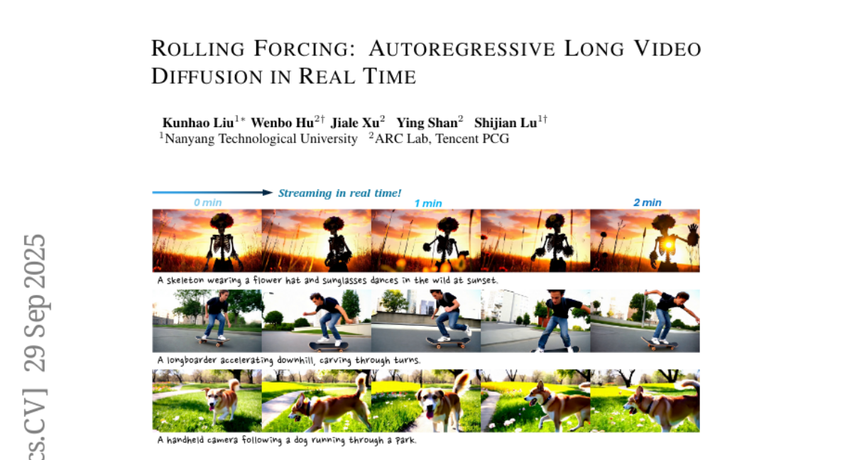 Rolling Forcing: Autoregressive Long Video Diffusion in Real Time