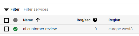 Second, we need to build the docker image and deploy it to cloud run by selecting the correct project (replace PROJECT-ID) and set the name of the instance such as ai-customer-review. You can find more information about the deployment on Google's guide - Deploying to.