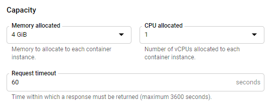 After a few minutes, you will also need to upgrade the memory allocated to your Cloud Run instance from 256 MB to 4 Gb. To do so, head over to the Cloud Run Console of your project.