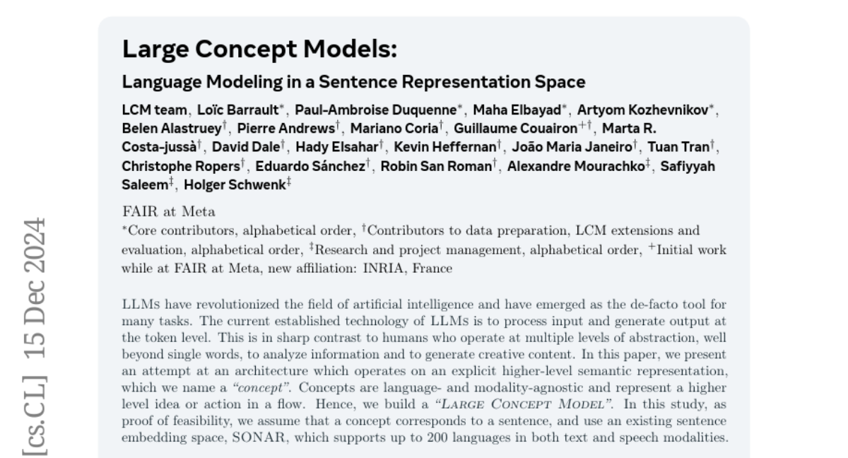Large Concept Models: Language Modeling in a Sentence Representation