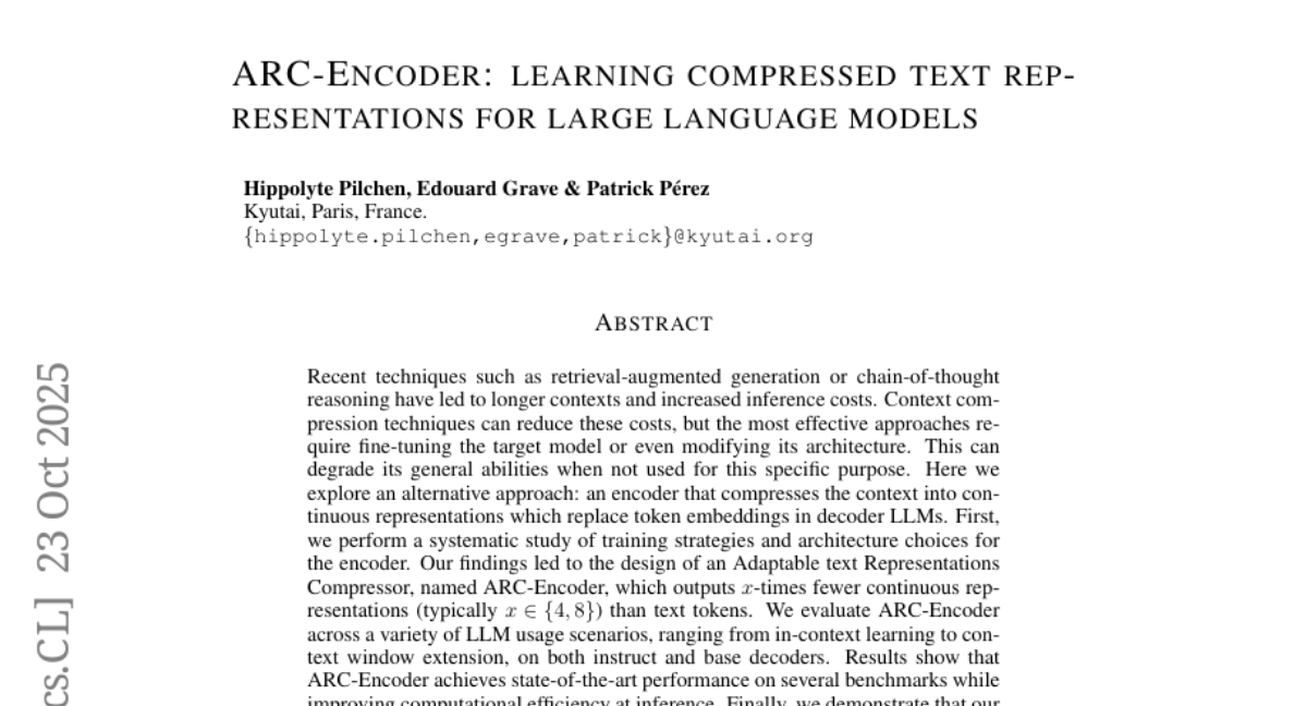 ARC-Encoder: learning compressed text representations for large language models