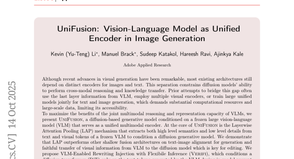 UniFusion: Vision-Language Model as Unified Encoder in Image Generation