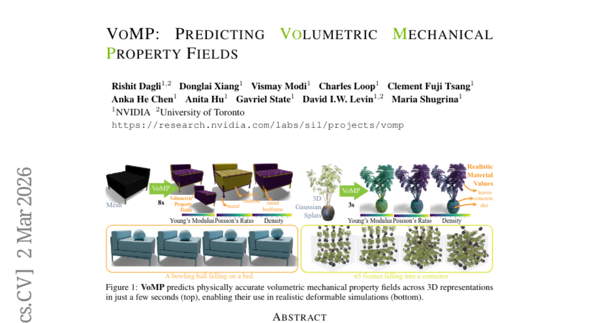 VoMP: Predicting Volumetric Mechanical Property Fields liked