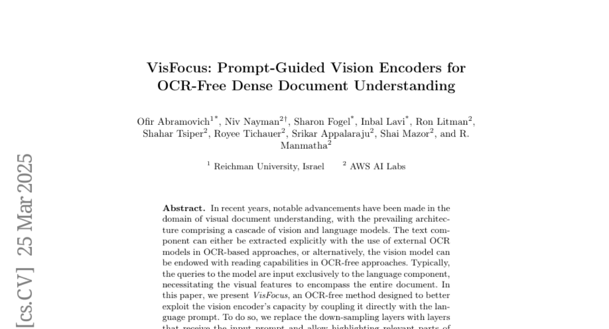 VisFocus: Prompt-Guided Vision Encoders for OCR-Free Dense Document