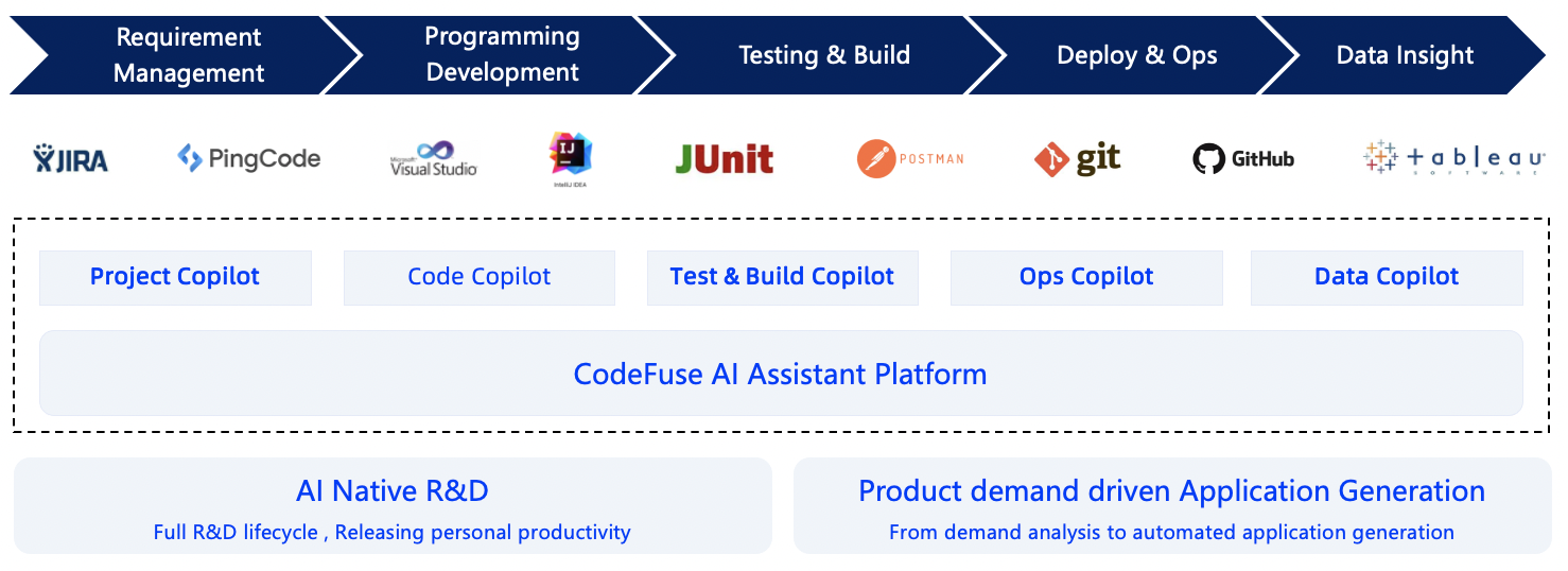 We are passionating about creating innovative open-source solutions that empower developers throughout the software development process as shown above. We also encourage engineers and researchers within this community to join us in co-constructing/improving CodeFuse.