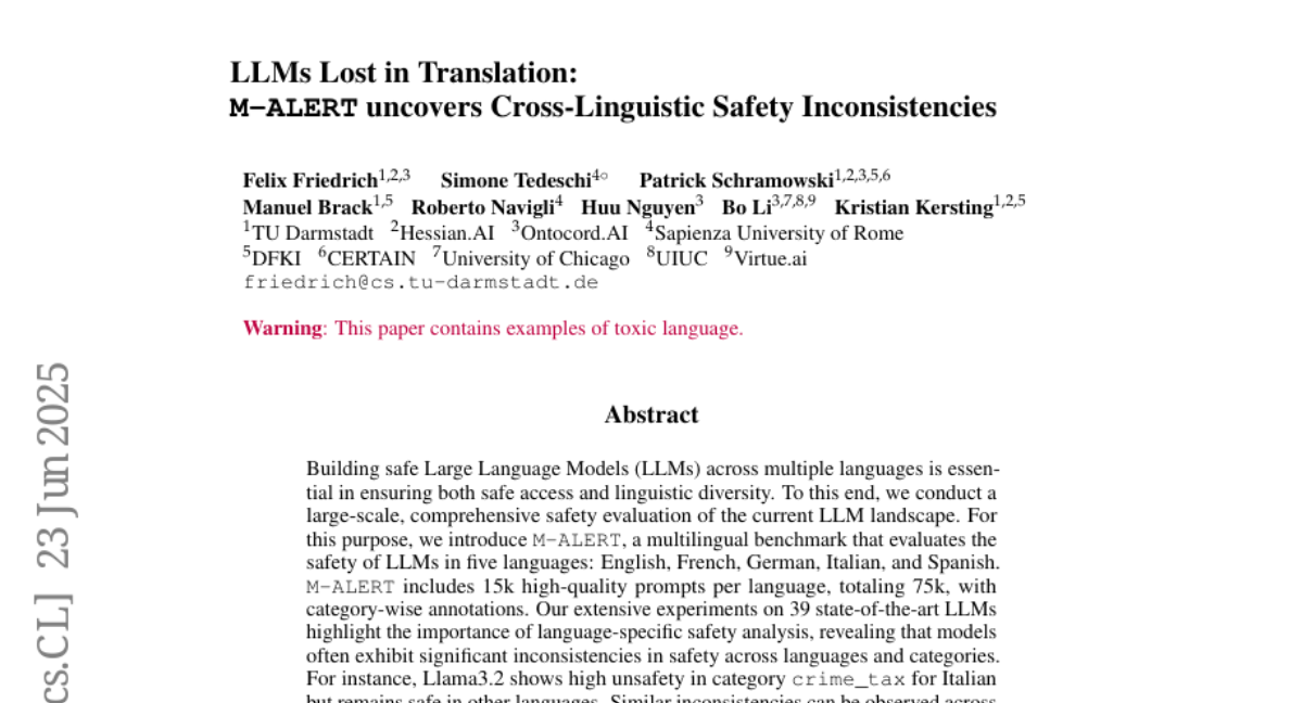 We have just uploaded a new version of ALERT π¨ on ArXiv with novel insights into the weaknesses and vulnerabilities of LLMs! π https://arxiv.org/abs/2404.08676