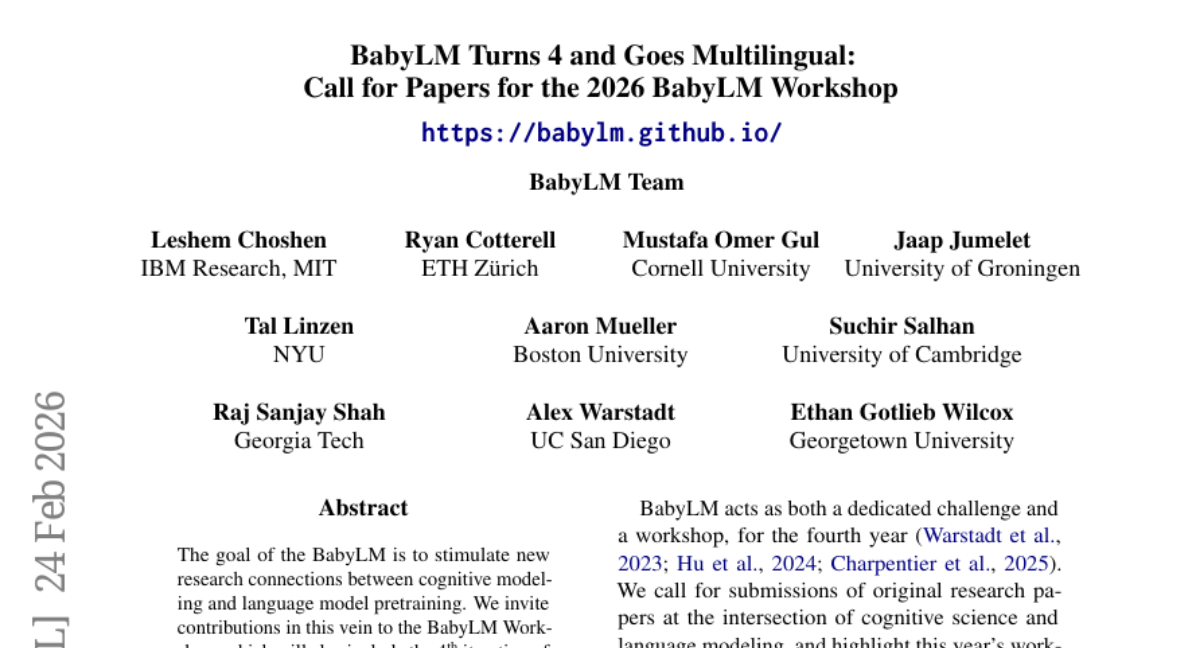 BabyLM Turns 4: Call for Papers for the 2026 BabyLM Workshop updated