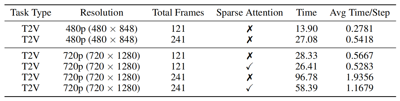 We report the total inference time for 50 diffusion steps for HunyuanVideo 1.5 below: